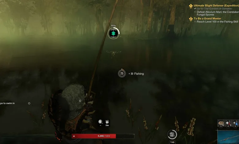 Worry not, as we have the perfect spot to do so. Yes, the quest is given near fresh water, while you’re also rewarded with a fishing rod that grants you better luck catching fish in fresh water for completing the previous quest from the chain. We can agree that it’s a valuable stat for pursuing this caliber, but not necessarily the type of water you want to fish them, big boys.