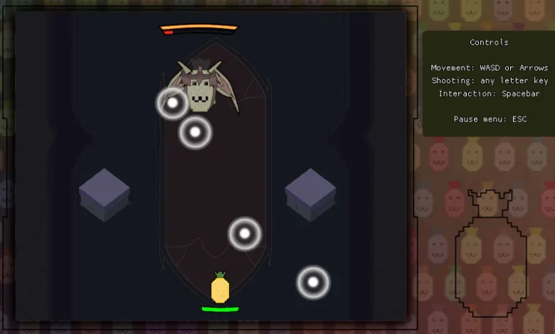 It’s a word about HTML5 video game, which can be played in your favorite browser. The game is called Castle Pineapplia. Players can play the game by visiting the following link on itch.io: