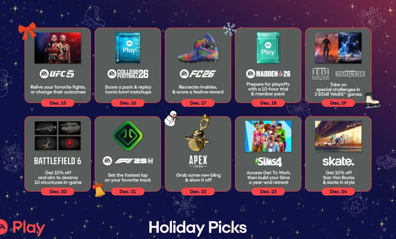 EA Play launches a Holiday Picks program running December 15 through December 24, offering a daily slate of featured titles, timed trials, member rewards, and purchase discounts for Xbox Game Pass Ultimate and PC Game Pass subscribers who receive EA Play with their membership.