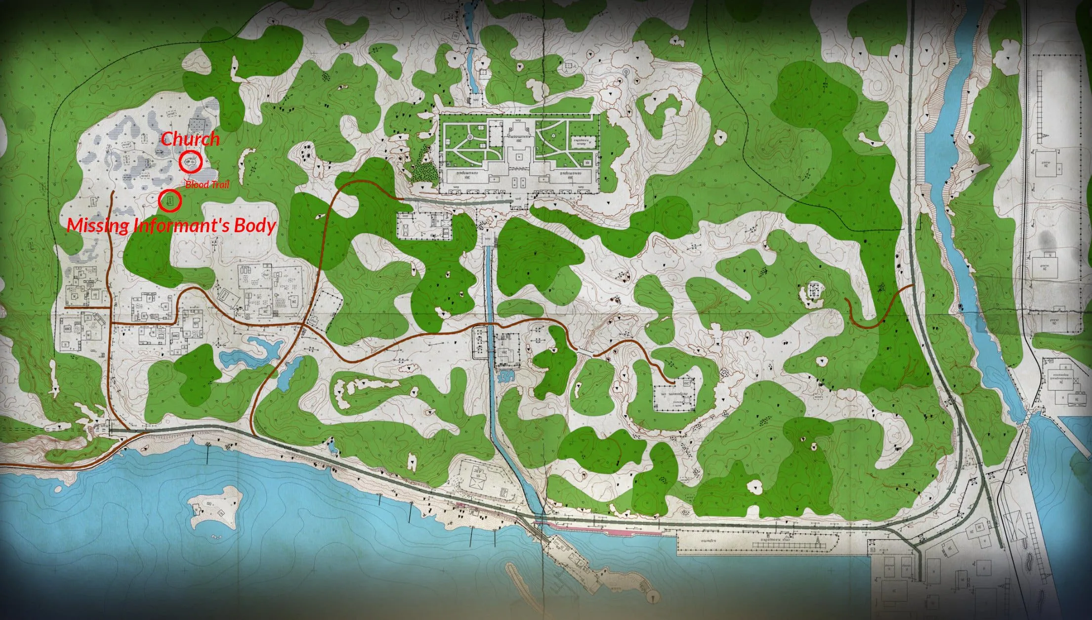 Early in the quest, you’ll find out that the Cultists have eliminated the informant inside the Church, and dragged his body to a nearby house. Where exactly is that? Worry not; we have you covered. You can find the exact positioning on the map below, including the close-up images for better illustration.