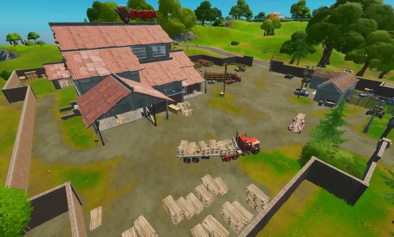 In the middle of Holly Hedges, Weeping Woods, Slurpy Swamp, and The Rig, there is a production site known as “Logjam.” Around the site, there are abandoned cars, brick fence, and also wooden logs and pellets. Which means, we have just the right spot for accomplishing the challenge.