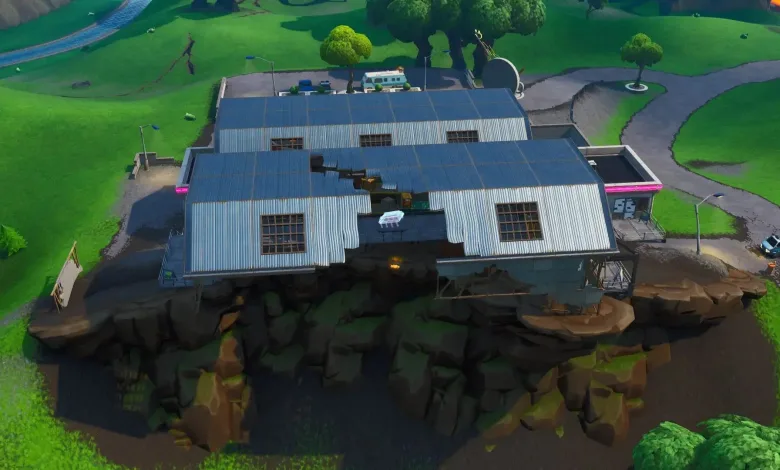 With all of that being said, let’s take a look where exactly the Fortbyte #31 is located. More precisely, in which building in Dusty Divot is this piece of chip hiding? It is in the hangar with a broken roof, on the North side of Dusty Divot. We won’t be including a map image just because Dusty Divot is a named zone in Fortnite, and it is pretty much located at the center of the map.