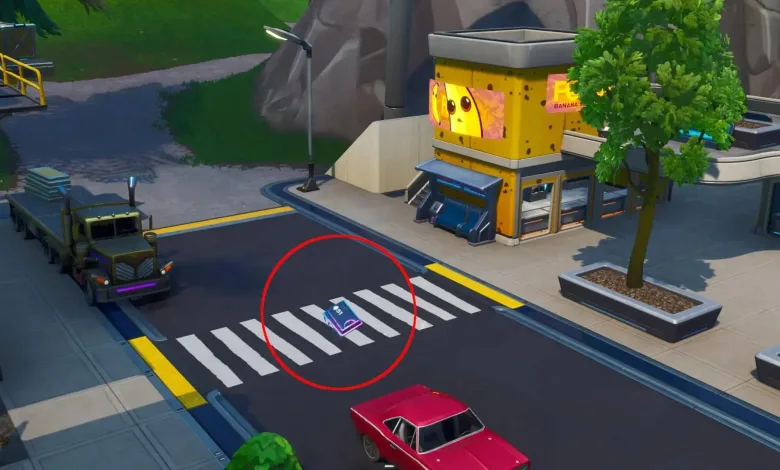 Another day for another Fortbyte challenge. This time, what differs from previous ones is that you will need to use the Cluck Strut emoticon to cross the crossing just outside of Peely’s Banana Stand. Peely’s Banana Stand is located in Neo Tilted, thanks to the most recent reconstruction. The Peely Banana stand is on the west side in Tilted, and it is hard to miss, honestly.