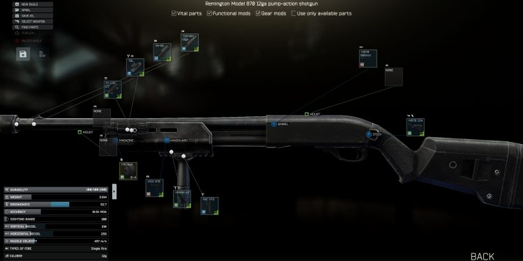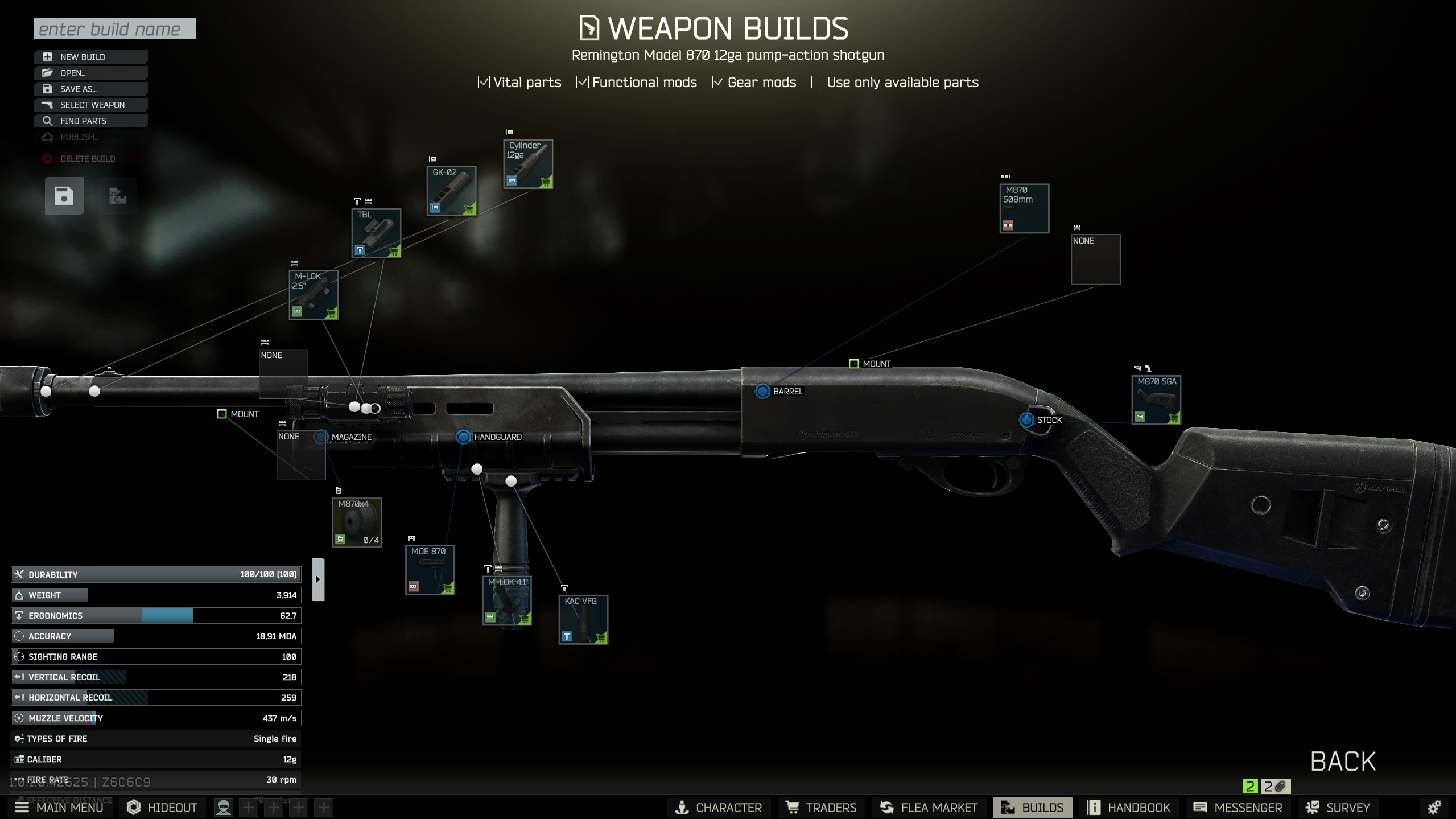 Just when I finally sorted out the stable Internet connection and power supply for it, the Government stepped up the game and started blocking half the IP addresses that handled most of the data flow in Tarkov. All that because TerraGroup allegedly uses “Ebambium” ISP to further destabilize the situation in the city and wreak havoc. Sounds like some gibberish about the Ragnarok coming, don’t you think? By the way about gibberish and weapons — some weirdo with a lightning symbol tattooed on his face asked for a Remington 870 shotgun. Equipped with a tactical device, Magpul MOE handguard, and a tactical foregrip. Ergonomics above 60 and recoil sum less than 500.