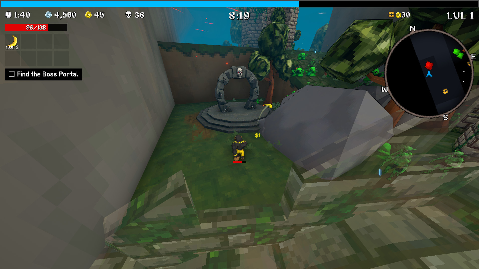If you find the portal with time to spare, keep exploring to level up and collect more potent weapons and tomes. Once discovered, the portal will appear on your mini-map if you stray too far, so you can prep before the fight.