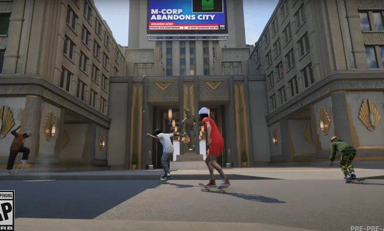 Let’s talk about the trailer for a bit. It’s pre-pre-alpha gameplay, so don’t expect polished graphics or final features, but man, it’s something. We looked at some raw footage after a hilarious skit about the M-Corp. Various skateboarders were shown pulling off tricks and skating up a building. It’s not much, but it’s a welcome sight for those starved for Skate content. Check it out below: