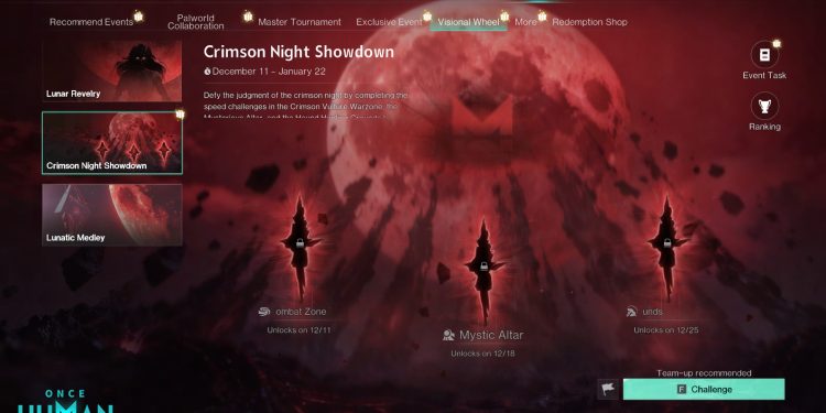 Once Human is kicking off Crimson Night Showdown as part of Visional Wheel S2: Lunar Revelry on December 10 (PT), with the event running through January 21 and a set of rule changes for Lunacy planned in the same update. The event centers on three new dungeons, Red Vulture Combat Zone, Esoteric Altar, and Hunting Grounds, each composed of 10 floors where enemies increase in strength and aggression as you climb. Red Vulture unlocks with the December 10 update, and the remaining dungeons open one per week until all three are live. When the third dungeon unlocks, leaderboards for each dungeon go live, and ranking rewards will be handed out at the event’s end.