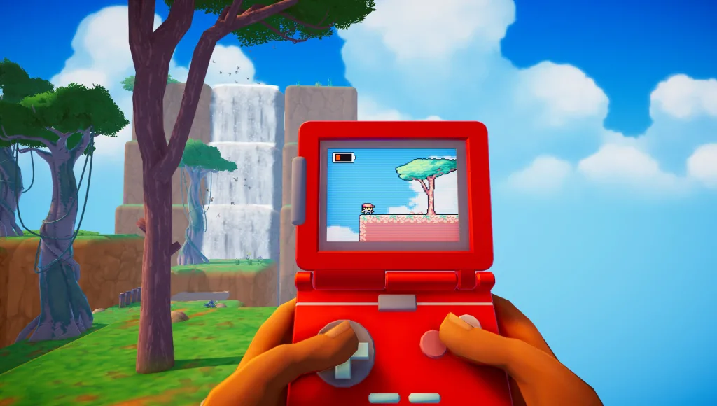 From a first-person viewpoint players look out over a full 3D world. At the bottom of that view the Qboy shows an overlayed version of the level as a flattened 2D platformer. That handheld view functions like a retro screen inside the 3D environment; the preview labels it roughly “2.5D.” That dual presentation is more than cosmetic. The 2D display often offers the clearest path to objectives. Key collectibles or routes that are hidden from a particular 3D vantage become obvious on the Qboy’s screen. Conversely, some obstacles and threats only appear in the 3D world. Players must shift attention between the two constantly to progress.